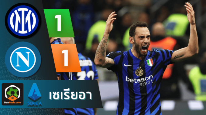 การแข่งขันฟุตบอล เซเรียอา 2024 ในเกมระหว่าง อินเตอร์ มิลาน และ นาโปลี จบลงด้วยผลเสมอ 1-1 แบบเข้มข้นสุดมันส์ โดยในครึ่งแรก นาโปลีเริ่มต้นได้ดีและเป็นฝ่ายขึ้นนำไปก่อนจากการยิงของ สก็อตต์ แม็คโทมิเนย์ ในนาทีที่ 23 ทำให้ทีมเยือนออกนำ 0-1 หลังจากนั้น อินเตอร์ไม่ยอมแพ้ พยายามเปิดเกมบุกและตีเสมอได้จากการยิงฟรีคิกของ ฮาคาน คัลฮาโนกลู ในนาทีที่ 43 ทำให้จบครึ่งแรกด้วยสกอร์ 1-1