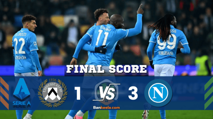 นาทีที่ 90+3: จบเกม นาโปลีคว้าชัยชนะเหนืออูดิเนเซ่ด้วยสกอร์ 3-1