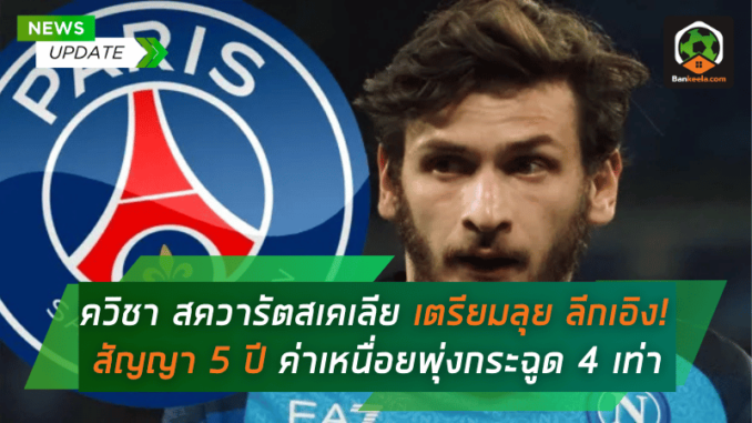 ปารีส แซงต์ แชร์กแมง (เปแอสเช) ทีมยักษ์ใหญ่แห่ง ลีกเอิง ฝรั่งเศส เตรียมสร้างดีลสะเทือนวงการลูกหนังอีกครั้ง ด้วยการคว้าตัว ควิชา สควารัตสเคเลีย ปีกจอมพลิ้วจาก นาโปลี โดยรายงานล่าสุดจากนักข่าวชื่อดัง ฟาบริซิโอ โรมาโน่ ยืนยันว่า ทั้งสองฝ่ายใกล้บรรลุข้อตกลงเรียบร้อยแล้ว
