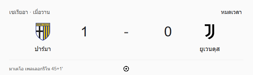- จบครึ่งแรก: ปาร์ม่า 1-0 ยูเวนตุส พลิกความคาดหมายด้วยการกดดันแนวรับทีมเยือนจนได้ผล