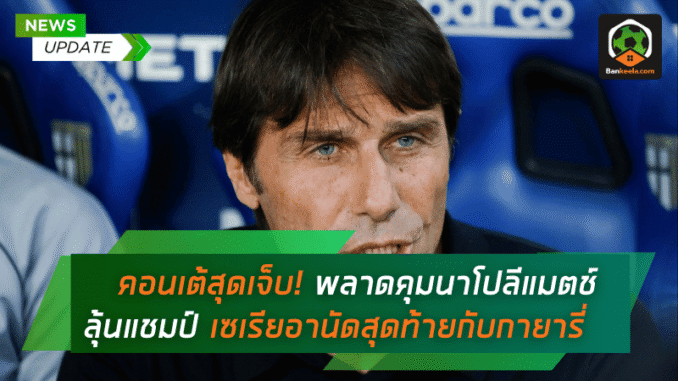 อันโตนิโอ คอนเต้ เฮดโค้ชจอมเฮี้ยบของ นาโปลี ออกอาการสุดเศร้าเมื่อเจ้าตัวจะไม่ได้ลงไปยืนคุมทีมข้างสนามในเกมนัดชี้ชะตาแชมป์ กัลโช่ เซเรีย อา 2024/25 ที่ทัพ “อัซซูร่า” จะพบกับ กายารี่ วันศุกร์ที่ 23 พฤษภาคมนี้ หลังถูกแบนจากเหตุการณ์ดราม่าในนัดก่อนหน้านี้ พร้อมประกาศชัด แม้ร่างกายจะอยู่บนอัฒจันทร์ แต่หัวใจยังแนบแน่นอยู่ข้างสนามเพื่อทีมและแฟนบอล