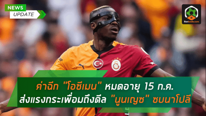 สถานการณ์ตลาดนักเตะเริ่มเดือดขึ้นเรื่อย ๆ โดยเฉพาะในแคมป์ของ นาโปลี หลังจากสื่อในตุรกีออกมาเปิดเผยข้อมูลสำคัญว่า ค่าฉีกสัญญาของ วิคเตอร์ โอซีเมน กองหน้าตัวเก่งทีมชาติไนจีเรีย อยู่ที่ 75 ล้านยูโร หรือประมาณ 2,700 ล้านบาท และจะหมดอายุลงในวันที่ 15 กรกฎาคมนี้ ซึ่งนั่นอาจกลายเป็นอุปสรรคใหญ่ในการเดินหน้าคว้าตัว ดาร์วิน นูนเญซ จากลิเวอร์พูลเข้าร่วมทัพในช่วงซัมเมอร์นี้
