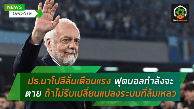 เสียงเตือนกึกก้องจากฝั่งอิตาลีที่วงการลูกหนังโลกควรต้องฟังไว้ให้ดี เมื่อ ออเรลิโอ เด เลาเรนติส ประธานจอมโผงผางของ นาโปลี ออกโรงแสดงท่าทีอย่างดุดัน พร้อมสาดคำเตือนแรงถึงอนาคตของฟุตบอล ว่าหากยังปล่อยให้ทุกอย่างเดินไปบนเส้นทางเดิมโดยไร้การแก้ไข ภายในเวลาเพียง 2-3 ปี ฟุตบอลอาจล้มหายตายจากสายตาผู้คน และสิ่งที่คนทั้งโลกหลงรักอาจไม่เหลือเค้าเดิมอีกต่อไป