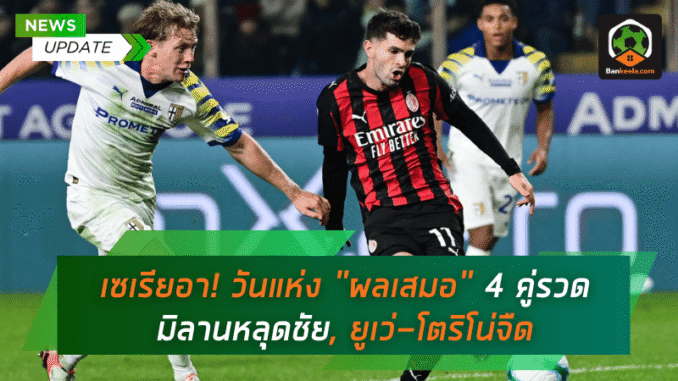 เกมวันอาทิตย์ของศึก กัลโช่ เซเรียอา อิตาลี สัปดาห์ที่ 11 กลายเป็น “วันแห่งผลเสมอ” อย่างแท้จริง เมื่อทั้ง 4 คู่ในตารางแข่งขัน ต่างจบลงด้วยการแบ่งแต้มทั้งหมด — 3 คู่แรกเสมอแบบไร้สกอร์ ส่วนคู่บิ๊กแมตช์ ปาร์ม่า เสมอ เอซี มิลาน 2-2 สุดมันส์ในช่วงค่ำ เรียกว่าแฟนบอลอิตาเลียนได้ดูครบทุกอารมณ์ทั้งเกมรุกดุดัน เกมรับเหนียวแน่น และโชว์หนึบของเหล่าผู้รักษาประตู