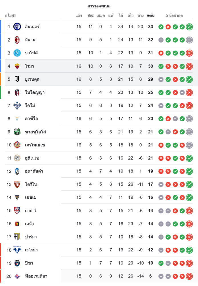 แฟนบอลที่อยากตามทุกจังหวะของศึกกัลโช่ เซเรียอา ทั้งสกอร์สด ไฮไลท์ และวิเคราะห์หลังเกมแบบเจาะลึก อย่าลืมติดตามเช็ก บ้านผลบอล สกอร์เรียลไทม์ และข้อมูลสถิติครบเครื่องได้ที่ บ้านกีฬา เราจะพาไปเกาะทุกคู่เดือดตั้งแต่หัวตารางยันโซนหนีตกชั้น อัปเดตกันทุกวันให้คอลูกหนังไม่พลาดแม้แต่วินาทีเดียว