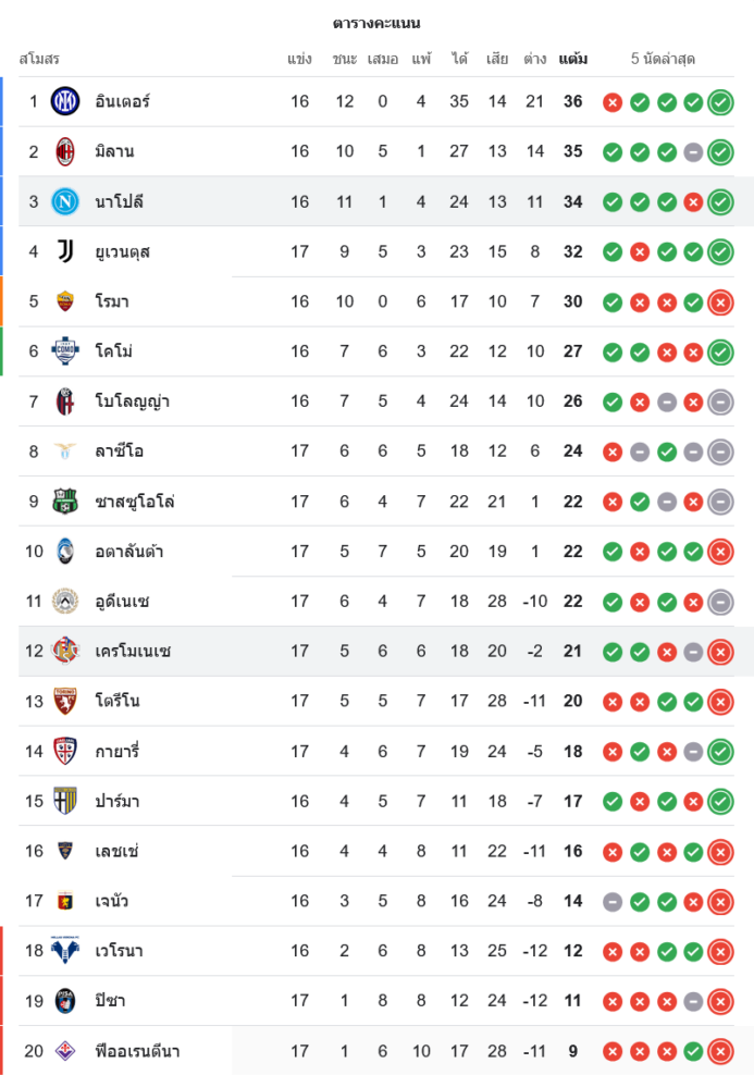 📈 สถานการณ์ในตารางคะแนนเซเรียอา