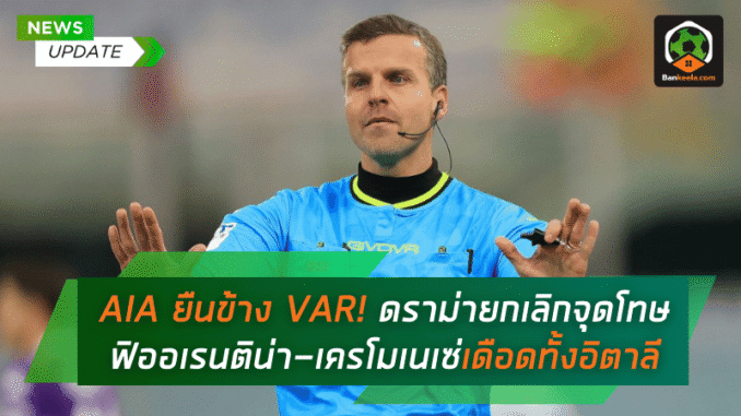 ท้ายที่สุด ดราม่าเกม ฟิออเรนติน่า เฉือน เครโมเนเซ่ กลายเป็นอีกเคสเรียนสำคัญของฟุตบอลยุคใหม่ ที่ “สิ่งที่ VAR มองว่าถูกต้อง” อาจไม่ตรงกับ “สิ่งที่แฟนบอลรู้สึกว่าใช่” เสมอไป AIA เลือกยืนข้างทีมงานตัวเองเต็มที่ ย้ำว่าการยกเลิกจุดโทษคือการตัดสินที่เหมาะสมตามกติกาและแนวปฏิบัติ ขณะที่แฟนบอลก็ยังมีสิทธิ์ตั้งคำถาม และตั้งวงถกกันต่อไปทุกครั้งที่มีจังหวะเปลี่ยนเกมแบบนี้โผล่ขึ้นมา