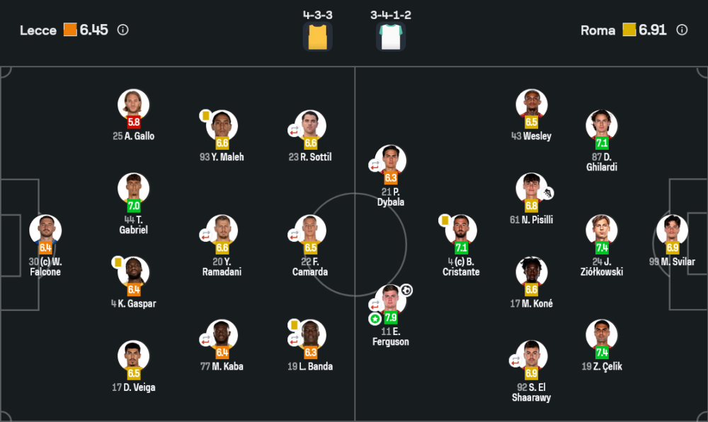 นักเตะโดดเด่นฝั่งโรม่านอกจากเฟอร์กูสัน ได้แก่ เซกี เชลิก กับ ยาน ซิโอล์คอฟสกี ที่ช่วยล็อกริมเส้นเลชเช่ได้อยู่หมัด รวมถึง คริสตันเต้ ที่ยืนคุมเกมกลางสนาม ทำให้โรม่าคอนโทรลจังหวะได้ทั้งเกม