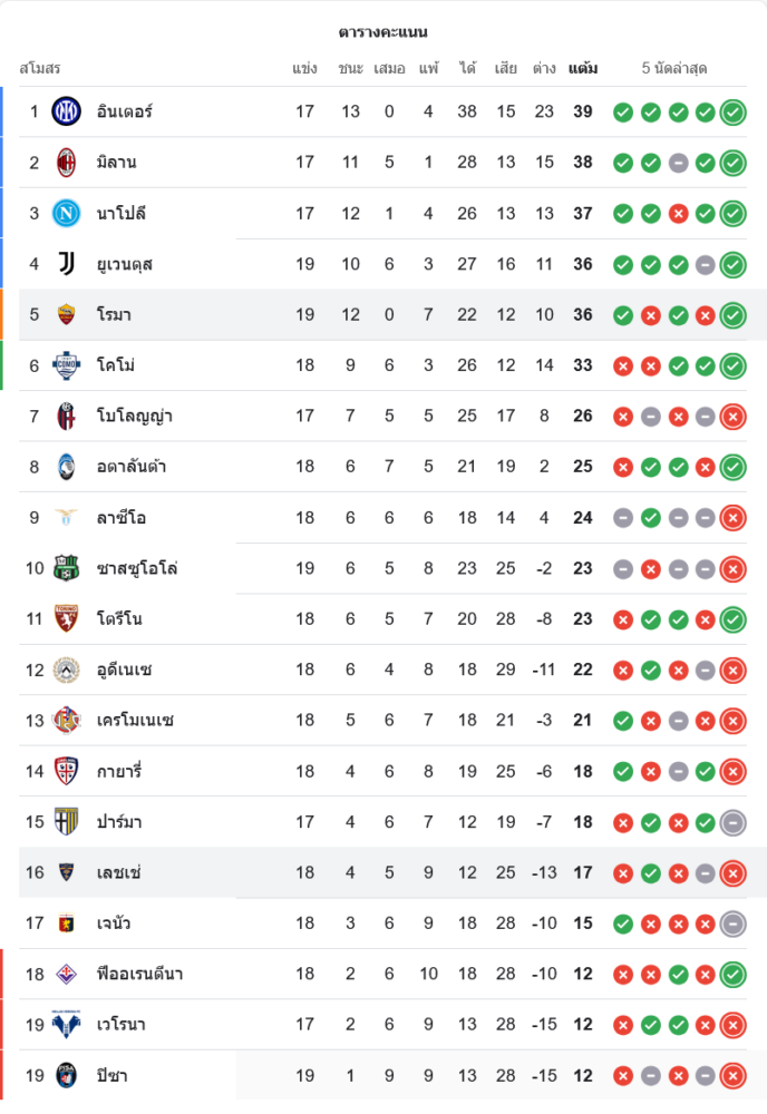 📊 สถานการณ์บนตารางคะแนนเซเรียอา