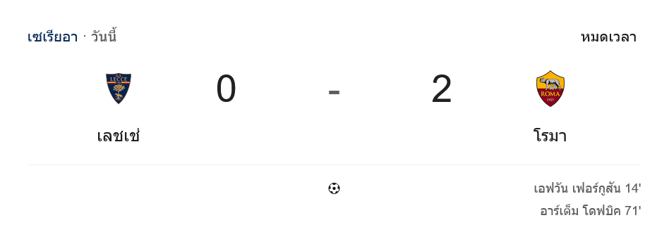 จาก : ผลบอลสด เซเรียอา ระหว่าง เลชเช่ 0-2 เอเอส โรม่า วันนี้ 7/1/69 – บ้านกีฬา