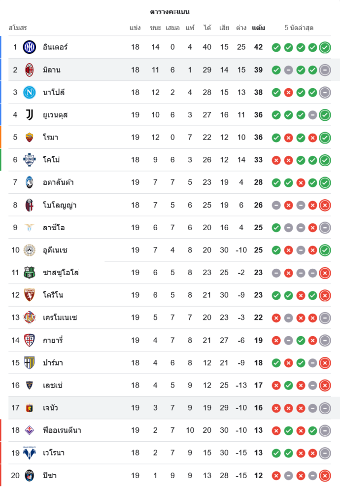 📊 สถานการณ์ในตารางคะแนนกัลโช่ เซเรีย อา