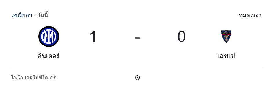 • 🧤 90+4′ เลชเช่ได้เตะมุมท้ายเกม แต่เลาตาโร่ช่วยโหม่งสกัดออก ก่อนหมดเวลาที่สกอร์ 1-0