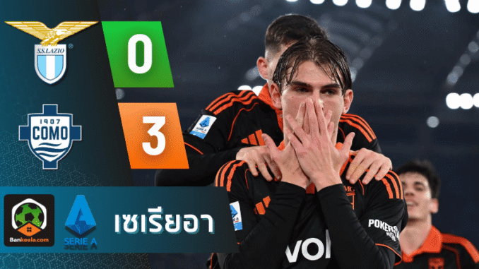 กัลโช่ เซเรีย อา ในค่ำคืนที่สตาดิโอ โอลิมปิโก้ แฟนอินทรีฟ้าขาวต้องนั่งมองสกอร์บนจอด้วยความช้ำใจ เมื่อโคโม่ของกุนซือเชสก์ ฟาเบรกาส บุกมาอัดลาซิโอถึงถิ่น 3-0 เกมนี้ภาพรวมในสายตา บ้านกีฬา วัดจากจังหวะในสนามและตัวเลข ผลบอลสด แล้ว ต้องบอกว่าเป็นคืนที่ทีมเยือนเล่นกันอย่างนิ่งกริบ ครบเครื่องทั้งเกมรุกและเกมรับ ส่วนลาซิโอเสียทรงตั้งแต่ต้นเกม แก้รูปเกมไม่ทันก่อนพังยับต่อหน้าแฟนตัวเอง