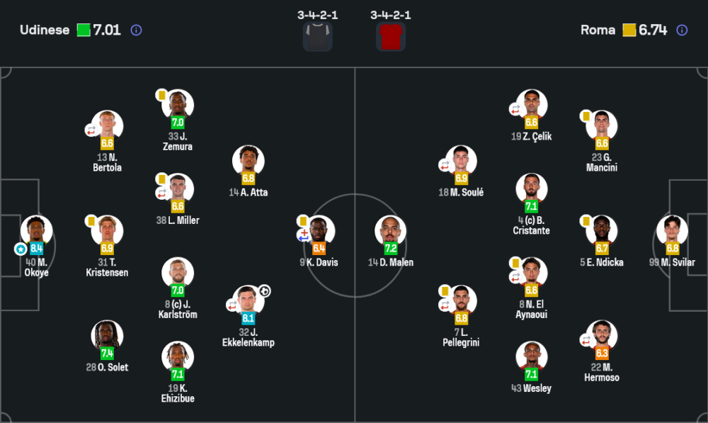• ตัวรุกด้านหลัง: มาติอัส ซูเล่ – 6.9, ลอเรนโซ เปลเลกรินี่ – 6.8