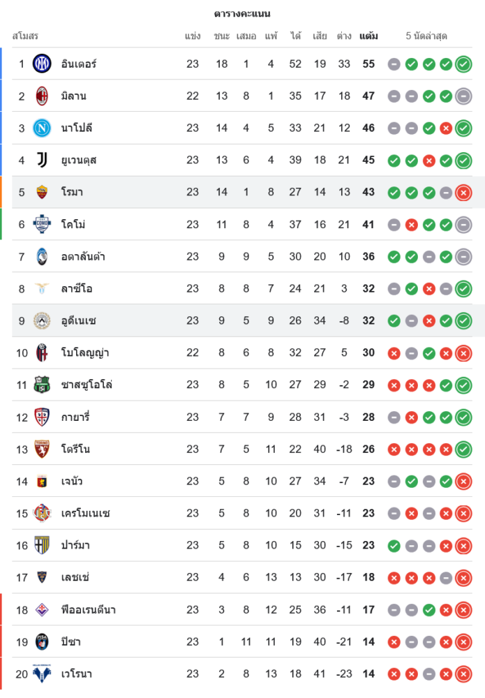 📈 สถานการณ์บนตารางคะแนนกัลโช่ เซเรีย อา