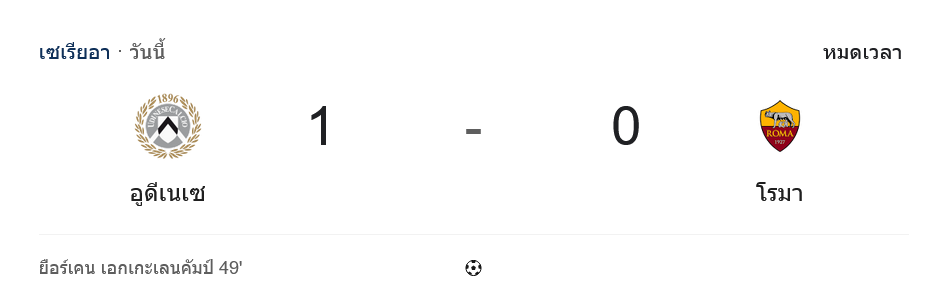 จาก : ผลบอลสด กัลโช่ เซเรีย อา ระหว่าง อูดิเนเซ่ 1-0 โรม่า วันนี้ 3/2/69 – บ้านกีฬา