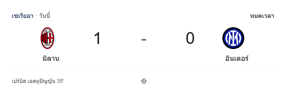 ช่วงท้ายเกมยิ่งเดือด อินเตอร์เดินหน้าลุยเต็มกำลัง ได้ทั้งเตะมุมและโอกาสโหม่งลุ้นตีเสมอ แต่ยังขาดความเฉียบคม จนสุดท้ายหมดเวลา เอซี มิลาน เฉือนชนะ อินเตอร์ มิลาน 1-0 แบบสะใจแฟนเจ้าถิ่น และเขย่าการลุ้นแชมป์ให้กลับมาร้อนแรงอีกครั้ง