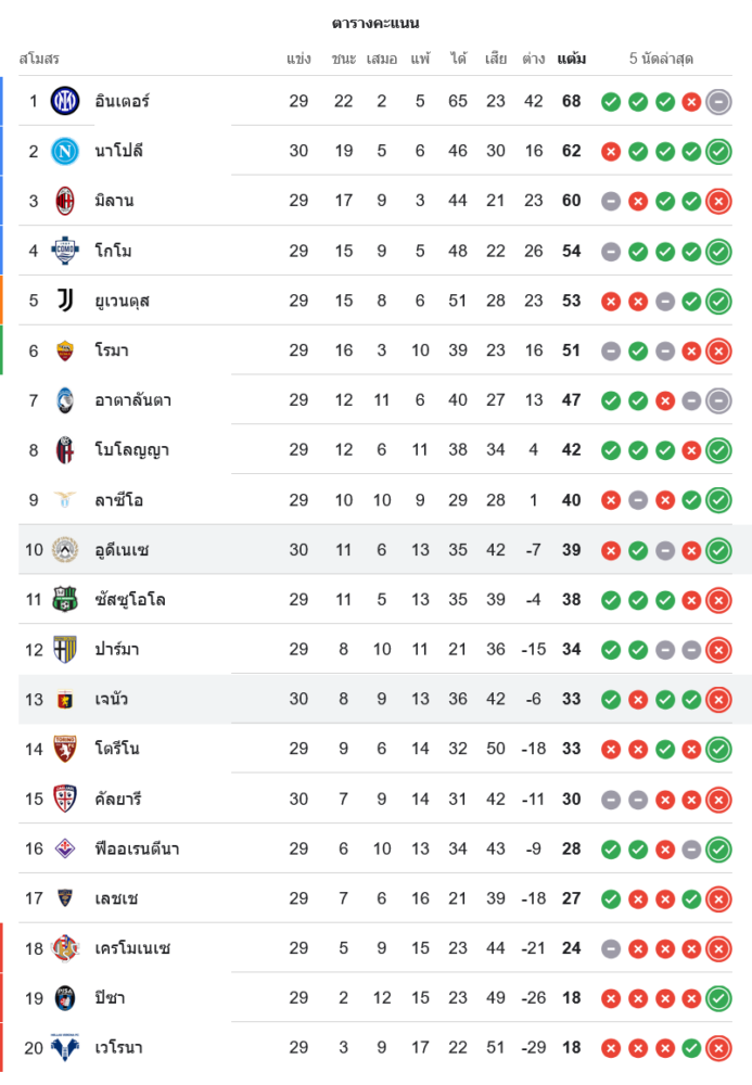 จาก : ผลบอลสด กัลโช่ เซเรีย อา ระหว่าง เจนัว 0-2 อูดิเนเซ่ วันนี้ 21/3/69 – บ้านกีฬา