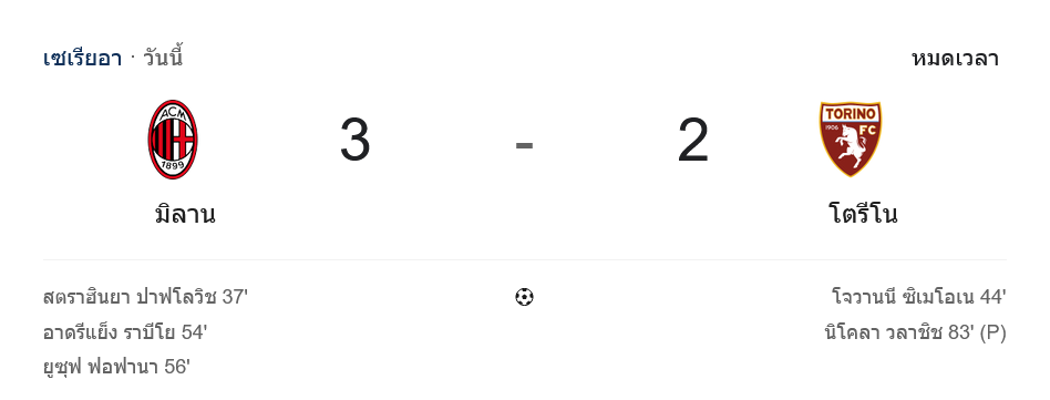 จาก : ผลบอลสด กัลโช่ เซเรีย อา ระหว่าง เอซี มิลาน 3-2 โตริโน่ วันนี้ 22/3/69 – บ้านกีฬา