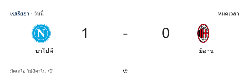 ศึก กัลโช่ เซเรีย อา เกมนี้จบแบบเข้มข้น เมื่อ นาโปลี เปิดบ้านเฉือน เอซี มิลาน 1-0 จากประตูชัยของ มัตเตโอ โปลิตาโน่ นาที 79 ส่งแฟนบอลที่ตามลุ้น ผลบอลสด และเช็ก บ้านผลบอล ได้เห็นเกมใหญ่ที่ตัดกันด้วยความเฉียบคมเพียงจังหวะเดียว