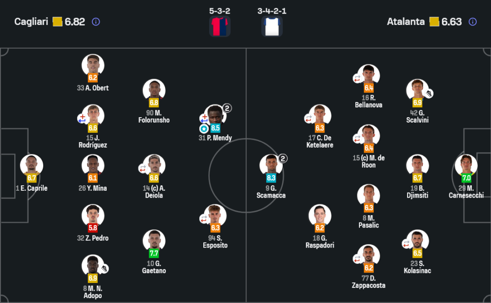 - กองหน้า : พอล เมนดี้ 8.5, เซบาสเตียโน่ เอสโปซิโต้ 6.3