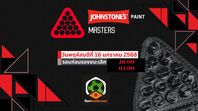 โปรแกรมถ่ายทอดสดสนุกเกอร์ การแข่งขัน Johnstone’s Paint Masters 2025 (วันที่ 16 มกราคม 2568)