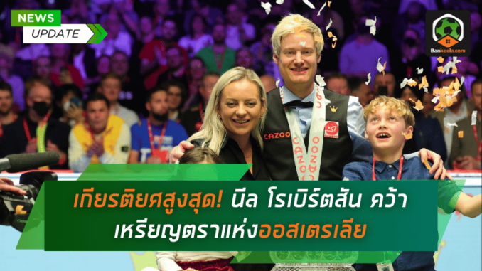 นีล โรเบิร์ตสัน ยอดนักสนุกเกอร์แห่งออสเตรเลีย ผู้สร้างประวัติศาสตร์เป็นนักสอยคิวที่ประสบความสำเร็จมากที่สุดนอกเกาะอังกฤษ ได้รับเกียรติสูงสุดจากรัฐบาลออสเตรเลีย หลังได้รับ “เหรียญตราแห่งออสเตรเลีย” (Medal of the Order of Australia – OAM) ในหมวด General Division ซึ่งถือเป็นรางวัลอันทรงเกียรติเทียบเท่ากับ MBE (Member of the Order of the British Empire) ของสหราชอาณาจักร