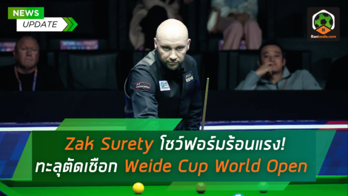 Zak Surety นักสอยคิวมือวางอันดับ 89 ของโลก ยังคงเดินหน้าสร้างผลงานระดับมาสเตอร์พีซ หลังโชว์ฟอร์มเหนือชั้นไล่ต้อน Tom Ford มือวางอันดับ 20 ของโลกไป 5-3 ทะลุเข้าสู่รอบรองชนะเลิศของศึก Weide Cup World Open ซึ่งเจ้าตัวเองยังคงรู้สึกเหมือน “กำลังเล่น PlayStation” กับฟอร์มการแทงที่ร้อนแรงที่สุดในอาชีพของเขา โดยด่านต่อไปคือบททดสอบครั้งใหญ่กับยอดนักสนุกเกอร์ตลอดกาลอย่าง John Higgins