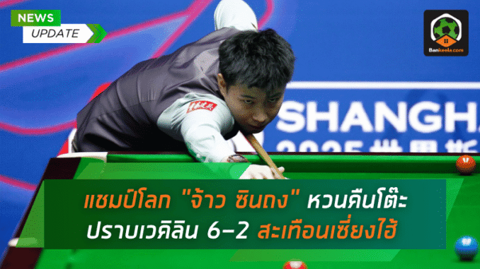 กลับมาอย่างสง่างามสำหรับ จ้าว ซินถง เจ้าของตำแหน่ง แชมป์โลกสนุกเกอร์ คนล่าสุดจากจีน ที่โชว์ฟอร์มสมศักดิ์ศรีในการแข่งขัน Shanghai Masters ด้วยการถล่ม คริส เวคิลิน ไปขาดลอย 6-2 ท่ามกลางเสียงเชียร์สนั่นของแฟนเจ้าถิ่นกว่า 2,000 คน แม้เมืองเซี่ยงไฮ้จะเพิ่งเผชิญ ไต้ฝุ่น พร้อมคำเตือน สึนามิ มาก่อนหน้านี้ไม่นาน