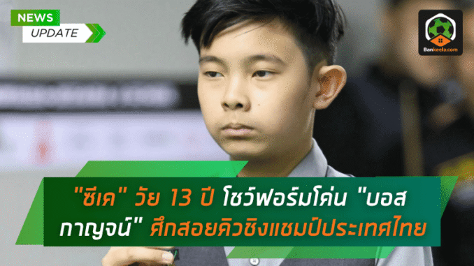 วงการ สนุกเกอร์ไทย ต้องจับตามอง เมื่อ “ซีเค ศิษย์หน่อย” คุณาฤทธิ์ มั่นคง จอมคิวดาวรุ่งวัยเพียง 13 ปี ระเบิดฟอร์มสุดร้อนแรง สร้างความประทับใจให้แฟนกีฬาทั่วประเทศ หลังต้อนเอาชนะ “บอส กาญจน์” สหรัฐ ศรีสังข์งาม นักแม่นคิวมากประสบการณ์ไปอย่างขาดลอย 4-1 เฟรม ในการแข่งขัน สนุกเกอร์ชิงแชมป์ประเทศไทย รอบคัดเลือก ขณะที่อีกหนึ่งยอดฝีมือ “อิศ จันท์” อิศรา กะไชยวงษ์ อดีตแชมป์ประเทศไทย 5 สมัย ก็ไม่ทำให้ผิดหวัง ผ่านเข้าสู่รอบ 80 คนสุดท้ายได้ตามคาด