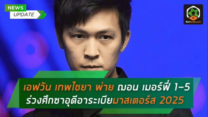 “เอฟวัน” เทพไชยา พ่าย “พ่อมดน้อย” ฌอน เมอร์ฟี่ 1-5 ร่วงศึกซาอุดีอาระเบียมาสเตอร์ส 2025 แต่ยังมีลุ้นโบนัสแม็กซิมั่มเบรก 50,000 ปอนด์