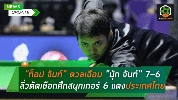 ตลอดทั้งแมตช์ ทั้งสองคนออกคิวได้อย่างแม่นยำและแข็งแกร่ง ผลัดกันทำแต้มแบบไม่ยอมถอย เสมอกันไปจนถึงเฟรมตัดสินที่ 6-6 ก่อนที่ ท็อป จันท์ จะใช้ประสบการณ์และความนิ่งที่เหนือกว่าเฉือนชัยไปได้ 7-6 เฟรม แบบที่แฟนๆ ในสนามลุกขึ้นปรบมือกึกก้อง ถือเป็นเกมที่สะท้อนให้เห็นถึงศักยภาพและความดุดันของนักสนุกเกอร์ไทยที่ไม่แพ้ใครในเอเชีย