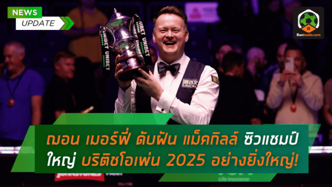 อีกหนึ่งค่ำคืนแห่งความยิ่งใหญ่ของวงการ สนุกเกอร์โลก เมื่อ “เดอะแมจิกเชี่ยน” ฌอน เมอร์ฟี่ มือ 16 ของโลกจากอังกฤษ โชว์ฟอร์มสุดร้อนแรง ออกคิวสุดเฉียบคม ไล่สอย “นักรบแห่งกลาสวีเจียน” แอนโธนี แม็คกิลล์ มือ 57 ของโลกจากสกอตแลนด์ ลงอย่างสุดมันส์ด้วยสกอร์ 10-7 เฟรม ผงาดคว้าแชมป์ บริติชโอเพ่น 2025 ไปครองได้อย่างสง่างาม พร้อมตอกย้ำความเป็นหนึ่งในจอมคิวระดับโลกตัวจริงแห่งยุค