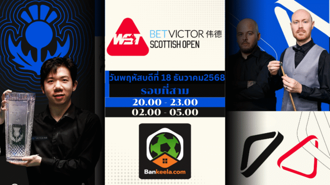 โปรแกรมถ่ายทอดสดสนุกเกอร์ การแข่งขัน WST Scottish Open 2025 (วันที่ 18 ธันวาคม 2568)