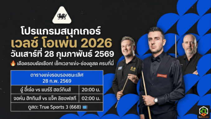 โปรแกรมสนุกเกอร์ เวลช์ โอเพ่น 2026 ลุ้นเดือดถึงรอบรองฯ