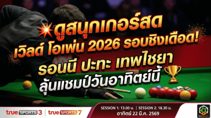 เกมนี้มีครบทั้งความกดดัน ความมัน และโอกาสสร้างประวัติศาสตร์ของนักสนุกเกอร์ไทย ใครกำลังหาโปรแกรม ดูสนุกเกอร์สดวันนี้ หรือรอติดตาม ผลสนุกเกอร์ เวิลด์ โอเพ่น 2026 ต้องปักหมุดแมตช์นี้เอาไว้ให้ดี
