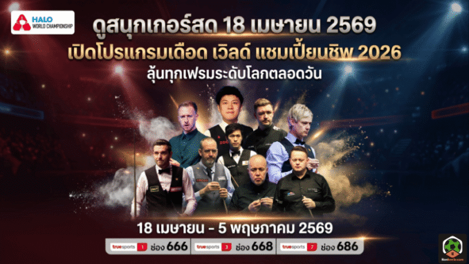 ดูสนุกเกอร์สด 18 เมษายน 2569 เปิดโปรแกรมเดือด เวิลด์ แชมเปี้ยนชิพ 2026 ลุ้นทุกเฟรมระดับโลกตลอดวัน