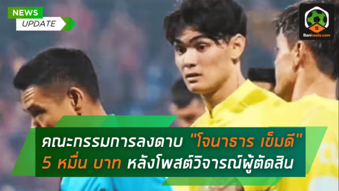 - โจนาธาร เข็มดี โดนปรับ 50,000 บาท หลังโพสต์วิจารณ์การทำหน้าที่ของผู้ตัดสินผ่าน Instagram