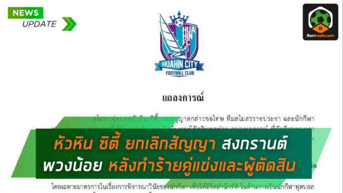 หัวหิน ซิตี้ ฟันฉับ! ยกเลิกสัญญา สงกรานต์ พวงน้อย หลังทำร้ายคู่แข่งและผู้ตัดสินกลางสนาม