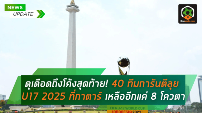 การแข่งขัน ฟุตบอลโลก U17 ปี 2025 ที่ทั่วโลกจับตามองใกล้จะครบรูปแบบเต็มที เมื่อขณะนี้มี 40 ทีมชาติ จากทุกทวีปที่การันตีผ่านเข้าสู่รอบสุดท้ายเป็นที่เรียบร้อยแล้ว เหลืออีกเพียง 8 โควตาสุดท้าย เท่านั้น ที่ยังคงต้องฟาดแข้งแย่งชิงกันอย่างดุเดือดจากทวีป เอเชีย, แอฟริกา และ อเมริกาใต้ เพื่อคว้าสิทธิ์ไปโลดแล่นในเวทีใหญ่สุดของเยาวชนโลก ณ ประเทศกาตาร์ ซึ่งจะจัดขึ้นระหว่างวันที่ 3–27 พฤศจิกายน 2568