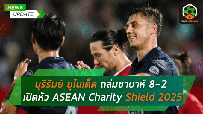 บุรีรัมย์ ยูไนเต็ด ประกาศศักดาแชมป์ไทยลีกด้วยฟอร์มที่ดุดันเกินบรรยาย เมื่อเปิดฉากอุ่นเครื่องปรีซีซั่นในศึกพิเศษ ASEAN Charity Shield 2025 ไล่ถล่มคู่แข่งจากมาเลเซียอย่าง ซาบาห์ เอฟซี ไปแบบขาดลอยถึง 8-2 ท่ามกลางแฟนบอลแดนใต้กว่า 15,000 คนใน สนามเรนโบว์ สเตเดียม จังหวัดปัตตานี เมื่อเย็นวันอาทิตย์ที่ 13 กรกฎาคม 2568 เวลา 18.00 น. โชว์ให้เห็นถึงความพร้อมและความเฉียบคมของเกมรุกที่พร้อมลุยศึกฤดูกาลใหม่แบบไร้ปรานี
