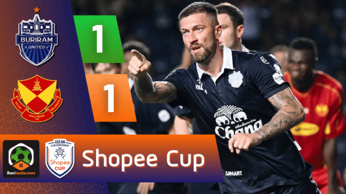 บุรีรัมย์เดินหน้าบุกเต็มกำลัง สร้างโอกาสยิงอย่างต่อเนื่อง แต่ยังติดเซฟและจบไม่คม เกมทำท่าจะจบลงด้วยความพ่ายแพ้ แต่แล้วช่วงทดเจ็บ นาที 90+6 แฟนบอลเจ้าถิ่นได้เฮลั่นสนาม เมื่อ ปีเตอร์ ซูลญ์ กองกลางตัวเก๋าสังหารจุดโทษตีเสมอ 1-1 ช่วยให้ “บ้านผลบอล” รายงานผลที่ทำให้บุรีรัมย์ยังไม่เสียหน้าในเกมแรกของกลุ่ม