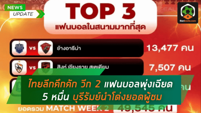 สนามแตก! ไทยลีกคึกคัก วีก 2 แฟนบอลพุ่งเฉียด 5 หมื่น – บุรีรัมย์นำโด่งยอดผู้ชม