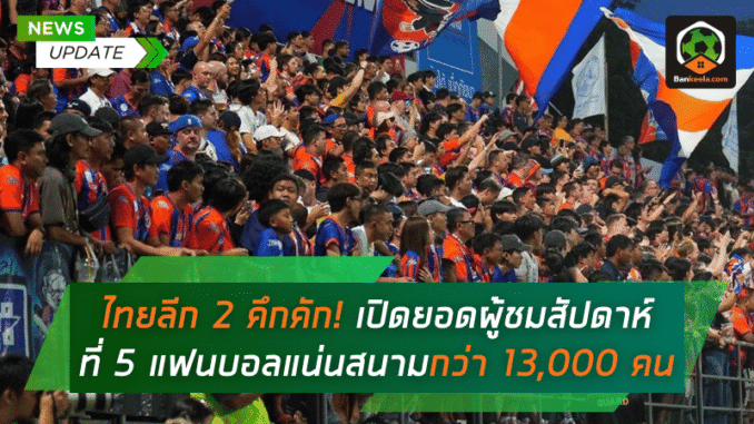 ศึก บีวายดี ซีล ไฟว์ ลีกสอง 2025/26 เดินทางมาถึง สัปดาห์ที่ 5 แล้ว และความนิยมของฟุตบอลไทยยังคงร้อนแรงไม่แพ้ลีกสูงสุด โดยในช่วงวันที่ 12-14 กันยายนที่ผ่านมา แฟนบอลจากทั่วประเทศต่างหลั่งไหลเข้าสนามเพื่อชมการแข่งขันกันอย่างคึกคัก รวมแล้วมีผู้ชมมากถึง 13,452 คน ถือเป็นหลักฐานชัดเจนว่าไทยลีก 2 ยังคงมีเสน่ห์และพลังดึงดูดที่เหนียวแน่น