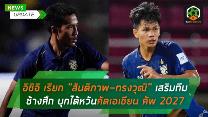 สถานการณ์ล่าสุดของ ทีมชาติไทย หลังเกมบุกอัด ไชนีส ไทเป 2-0 ในศึก เอเชียน คัพ 2027 รอบคัดเลือก นัดที่ 3 เมื่อวันที่ 9 ตุลาคมที่ผ่านมา ทำให้เกิดความเปลี่ยนแปลงในรายชื่อนักเตะทันที เมื่อ มาซาทาดะ อิชิอิ กุนซือใหญ่ชาวญี่ปุ่น ตัดสินใจเรียก สันติภาพ จันทร์หง่อม และ ทรงวุฒิ ใคร่ครวญ เข้ามาเสริมขุมกำลังด่วน แทนที่สองนักเตะคนสำคัญอย่าง เจริญศักดิ์ วงษ์กรณ์ และ โจนาธาร เข็มดี ที่ได้รับบาดเจ็บในเกมดังกล่าว