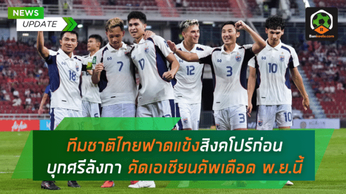 หลังเกมอุ่นเครื่องกับสิงคโปร์ “ช้างศึก” จะออกเดินทางไปเยือน ศรีลังกา ทีมอันดับ 197 ของโลก ในวันที่ 18 พฤศจิกายน 2568 เวลา 17.15 น. (ตามเวลาประเทศไทย) ณ สนาม โคลอมโบ เรซคอร์ส สเตเดียม กรุงโคลอมโบ ซึ่งเป็นแมตช์เดย์ที่ 5 ของศึก AFC Asian Cup 2027 qualifiers รอบคัดเลือก กลุ่มดี