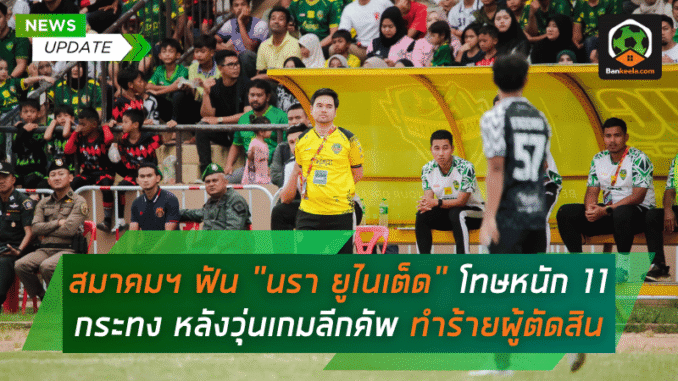 เดือดถึงขั้นฟ้อง! สมาคมฯ ฟัน “นรา ยูไนเต็ด” โทษหนัก 11 กระทง หลังเหตุวุ่นเกมลีกคัพ ทำร้ายผู้ตัดสิน