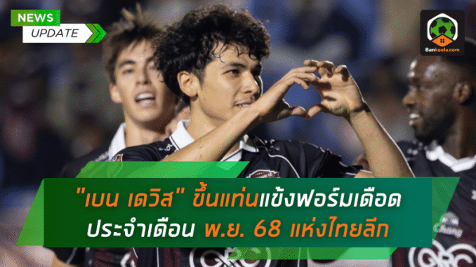 ฟอร์มร้อนแรงจนฉุดไม่อยู่สำหรับ เบน เดวิส มิดฟิลด์ลูกครึ่งทีมชาติไทยของ อุทัยธานี เอฟซี ที่ระเบิดผลงานสุดจัดในศึก ไทยลีก ดิวิชั่นสูงสุดของเมืองไทย จนคว้ารางวัล นักเตะยอดเยี่ยม ประจำเดือนพฤศจิกายน 2568 ของศึก BYD SEALION 6 LEAGUE 1 ฤดูกาล 2025/26 ไปครองแบบไร้ข้อกังขา
