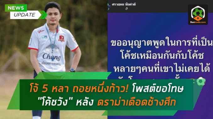 หลังจากนั้นไม่นาน “โจ้ 5 หลา” โพสต์อีกครั้งแบบชัดเจนกว่าเดิม และเป็นการเอ่ยขอโทษ “โค้ชวัง” โดยตรง พร้อมย้ำจุดยืนว่ายังสนับสนุนทีมชาติไทยเสมอ โดยระบุว่า
