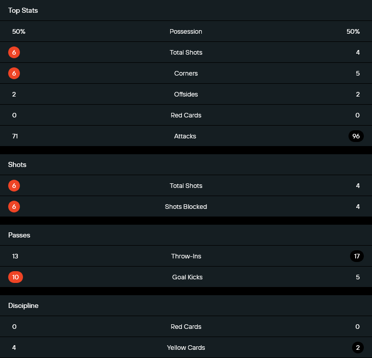 ลูกเตะมุมการท่าเรือได้มากกว่าเล็กน้อย บวกกับจำนวนการบุกที่อาจจะน้อยกว่าฝั่งแข้งเทพ แต่ทุกครั้งที่หลุดเข้าพื้นที่สุดท้ายจะดูอันตรายกว่าชัดเจน เกมนี้ไม่มีใบแดง ทว่ามีใบเหลืองรวมถึง 6 ใบ แสดงถึงความเข้มข้นและแรงปะทะระดับเกมถ้วยจริงๆ